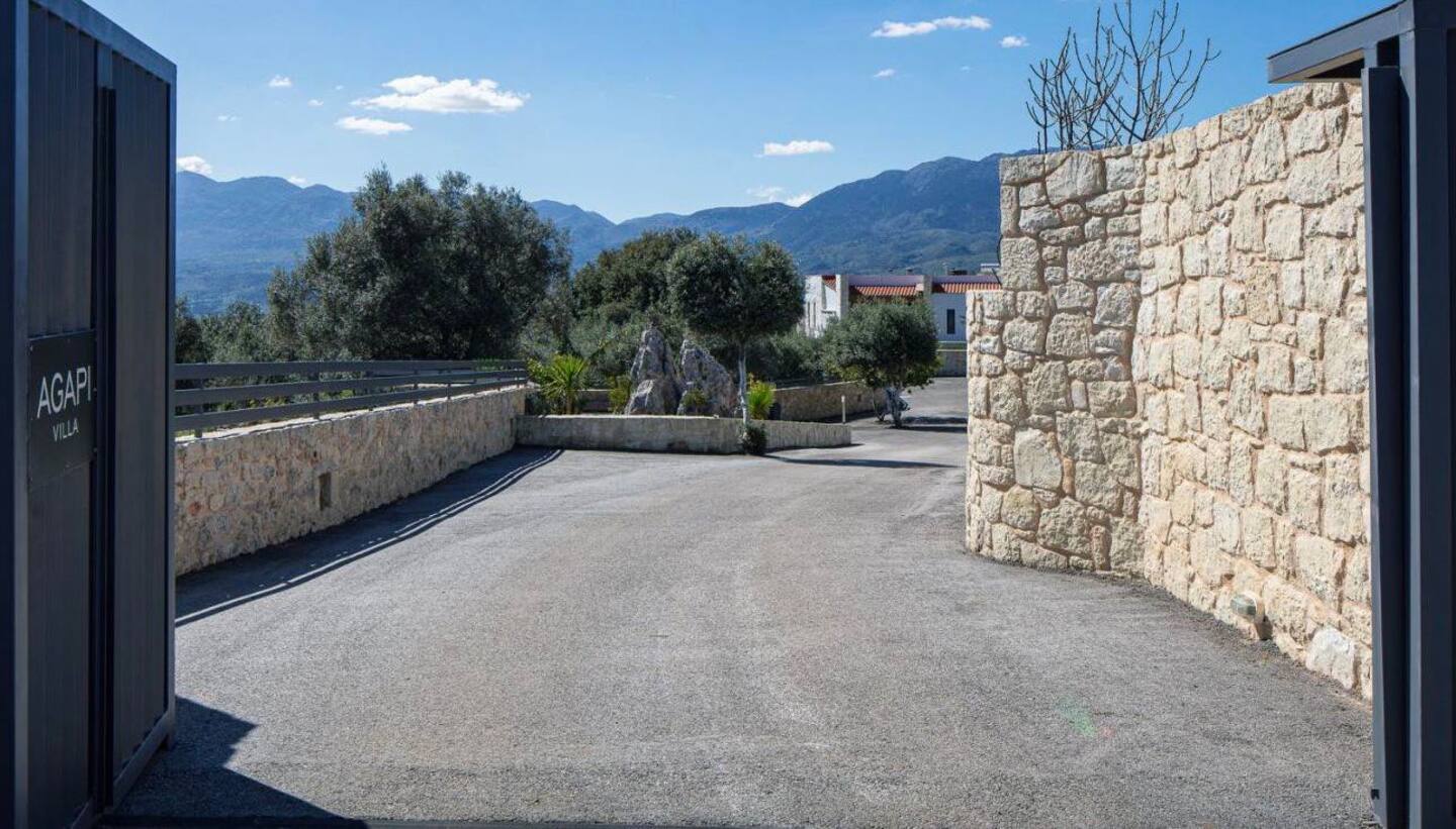 See photos from the exterior of the Agapi luxury villa.
